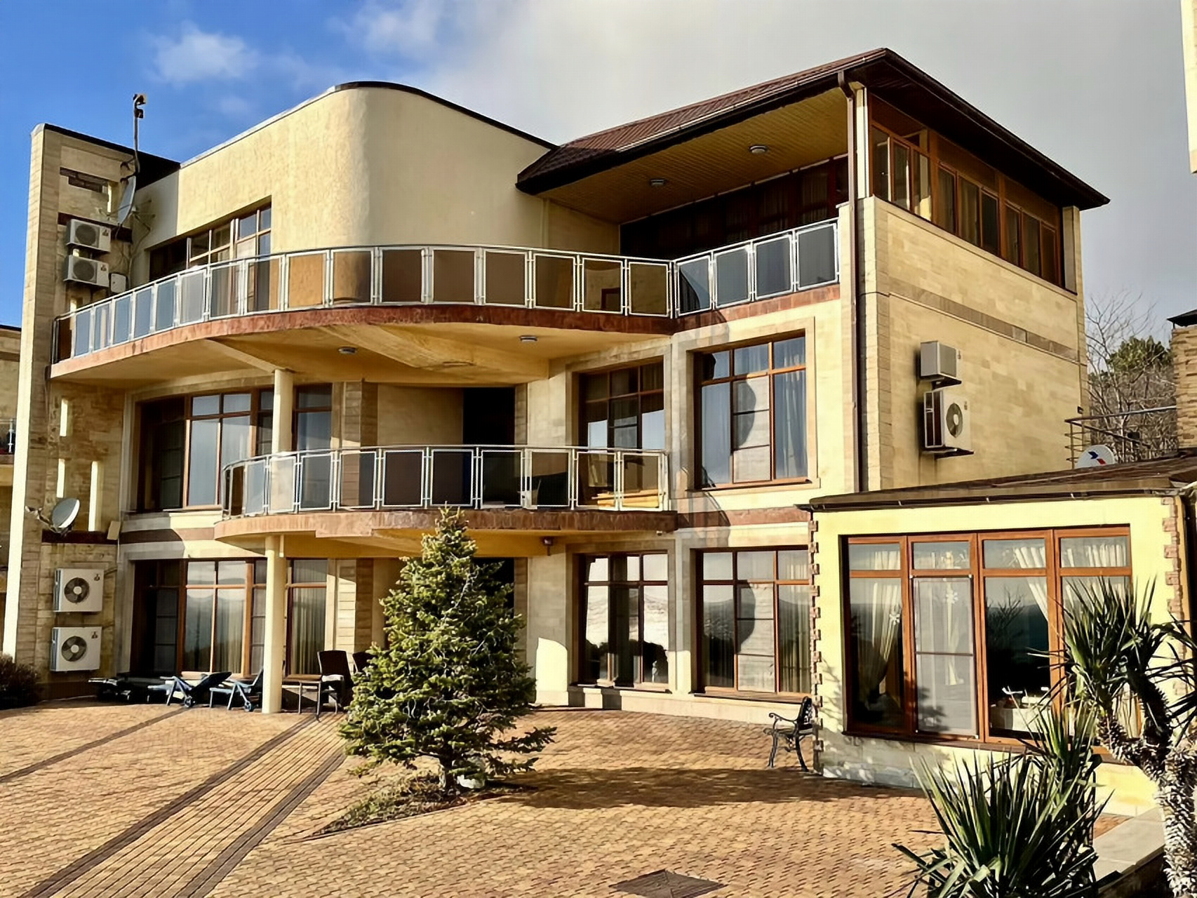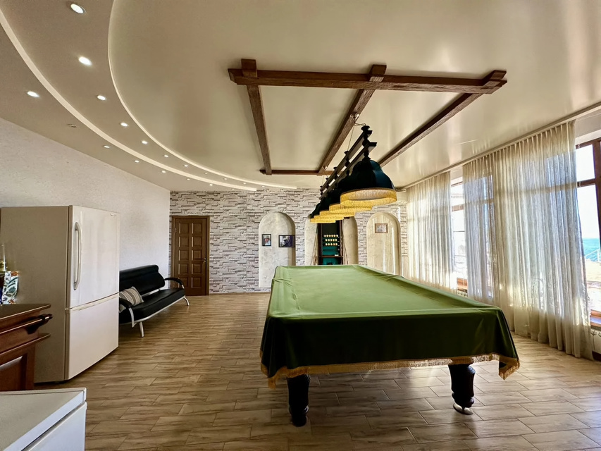 Характеристика: Вилла площадью 513,1 м² включает три просторные спальни и пять санузлов. Просторные комнаты с большими окнами наполняют дом светом и создают атмосферу уюта. Итальянский дизайн и качественная мебель делают интерьер стильным и комфортным. На участке площадью 6 соток расположены бассейн длиной 25 метров с функцией противотока, банкетный зал и эллинг, а также собственный выход к морю.